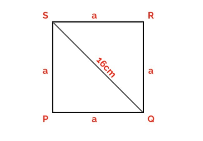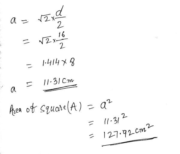 Question: The Diagonal Length of a Square is 16cm, please find the Are of the Square.