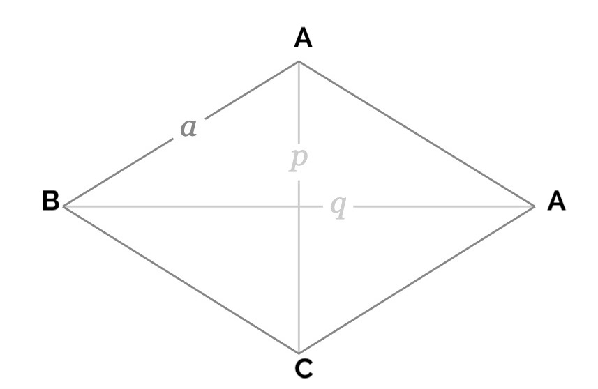 Finding Area of Rhombus When you know just one diagonal (p or q) and the length of each side: