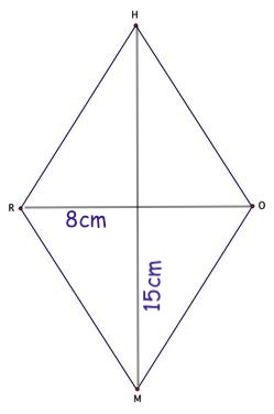 Question: Find the Area of Rhombus where HM = 15cm and RO = 8cm