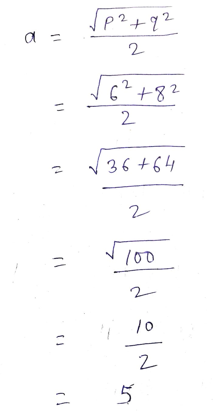 Question: The value of one of the diagonal of a Rhombus is 6m and the value of another diagonal is 8m. Find the value of its sides.